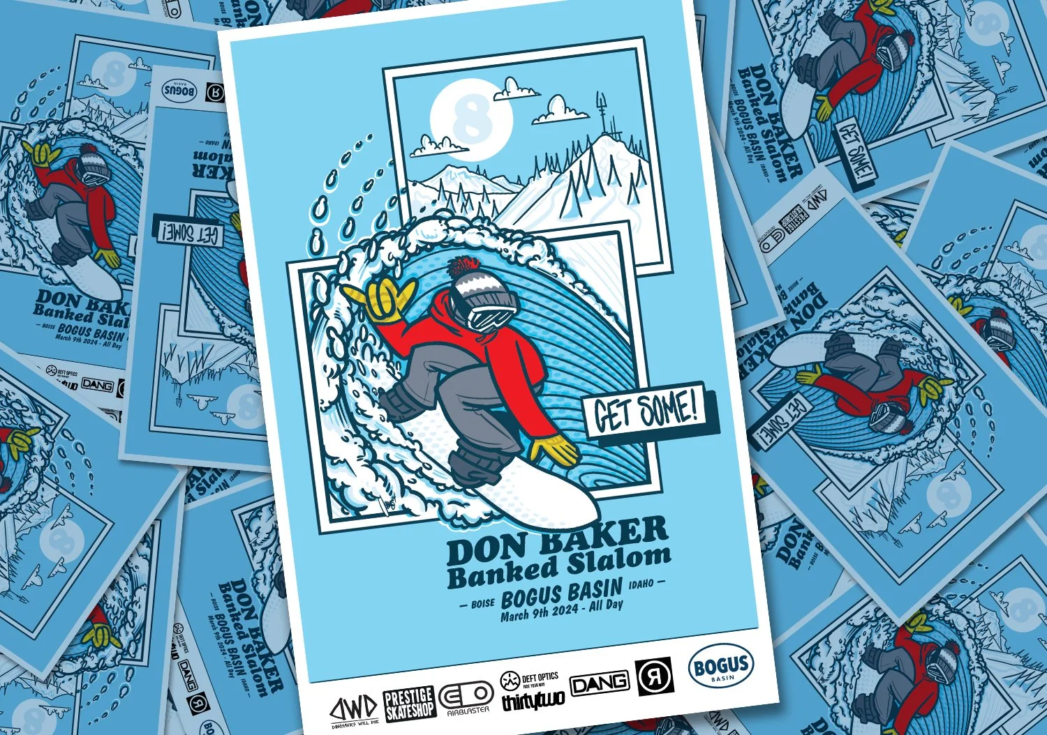 This is the 4th time doing this poster for Bogus Basin. Went with a fun super surfy vibe like the event.
